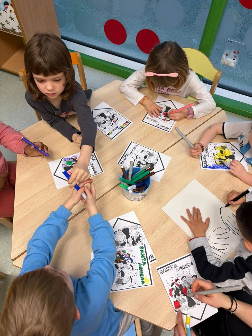 Esta semana hemos llenado la ludoteca de color, canciones y tradición. Las niñas y los niños han pintado banderolas, han creado sus pañuelos y el 4 de febrero hemos compartido un momento muy especial cantando juntxs las coplas de Santa Águeda